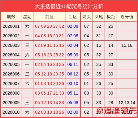 开奖回顾:大乐透第2026010期奖号为:02、03、13、18、26 + 02、09。 上期的奖号;开出1组连号02,03 ,开出1枚重号13 ,邻孤传比为0:4:1 。 大乐透历史同期奖号数据表 重号分析:在历史同期中开出有重号的期数有...
